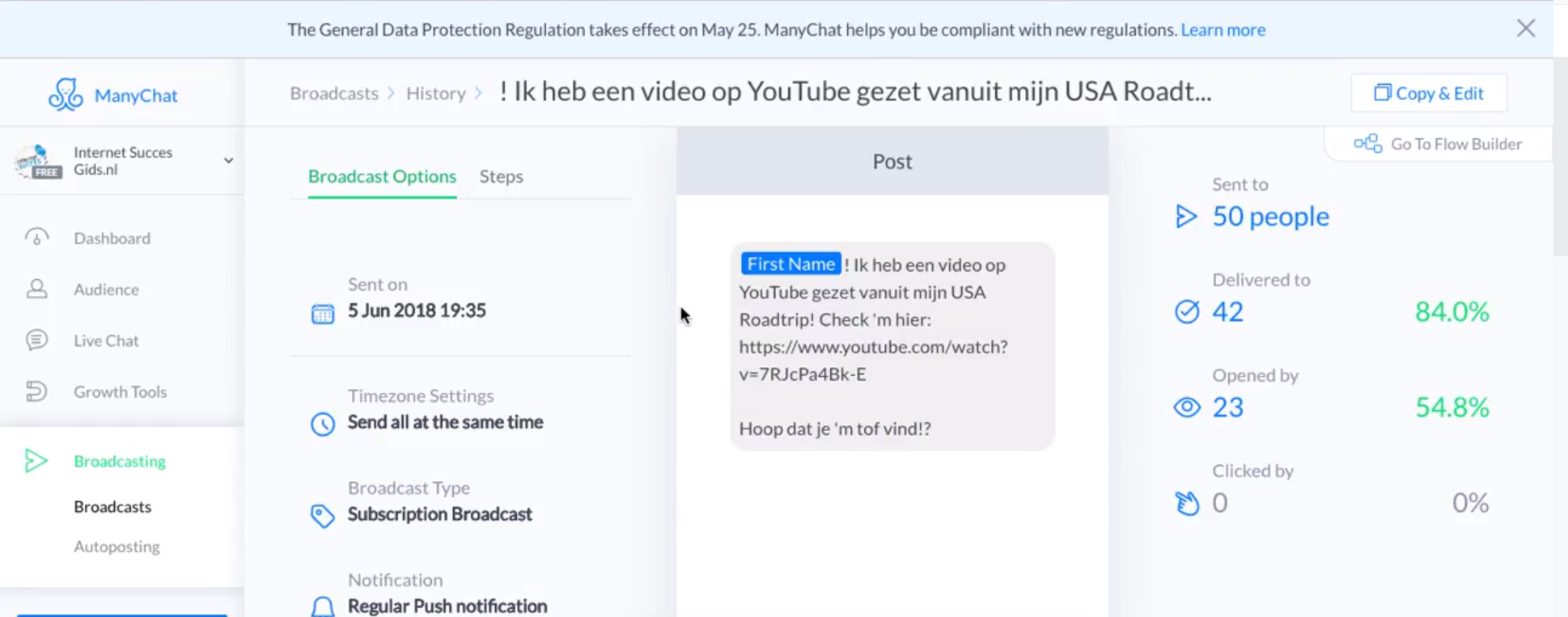 Vervolgens kan ik deze mensen via Messenger een bericht/broadcast sturen.