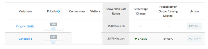 Hierboven zie je dus dat de variant een hogere conversie heeft dan het origineel.
